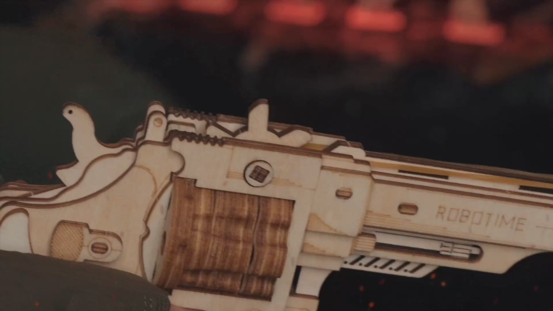 Disfruta de armar este rompecabezas 3D de 102 piezas. Armarlo toma alrededor de 30min y al finalizar tendrás un modelo de revólver con piezas funcionales y que dispara bandas de hule!